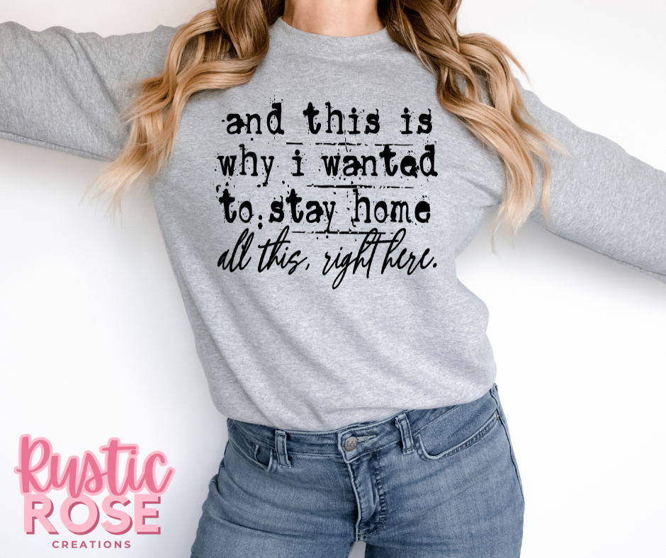 Celebrate the joy of staying in with this playful "And This Is Why I Wanted To Stay Home... All This Right Here." top. Perfect for anyone who’s not a people person or finds social gatherings a bit too much, this comfy shirt lets you express your mood with a wink. Cozy up and keep it low-key in style!