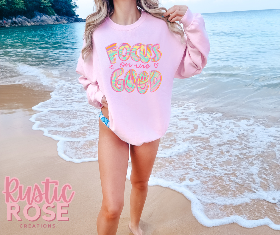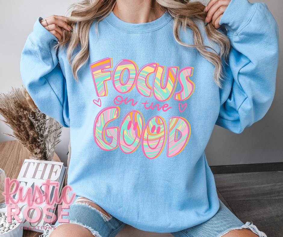 Stay stylish and positive with our Focus on the Good collection! Made with high quality material, choose from a t-shirt, crewneck, or hoodie - all with a good message. Always stay positive and focus on the good, no matter the situation. Good vibes only!