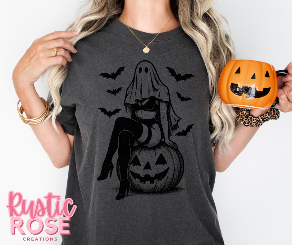 Show off your playful side with the Ghost Girl tee, featuring a sultry ghost girl graphic printed in either black or white. Made from super soft Comfort Colors fabric, this shirt delivers unbeatable comfort and style, making it perfect for casual days or spooky nights.