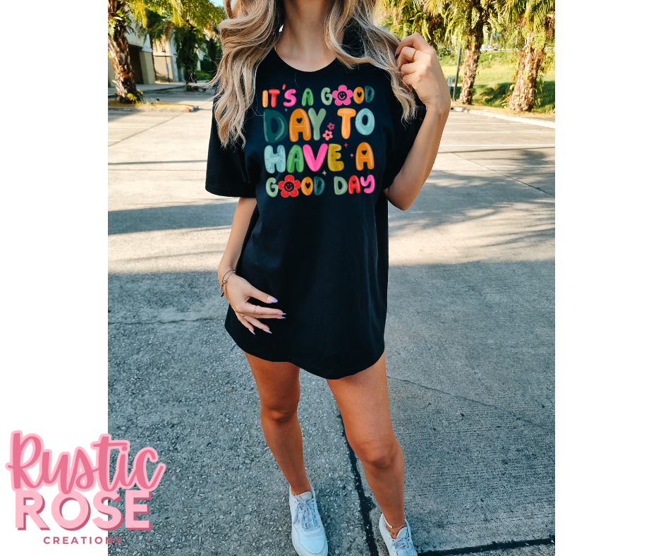 Brighten any outfit and your day with this playful reminder: "It's a good day to have a good day." Perfect to inspire yourself and spread positivity to everyone you meet, whether on the street or in the store. Add a little sunshine to your style and share good vibes wherever you go!