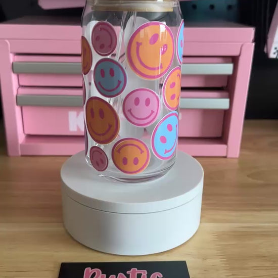 Get your caffeine fix, matcha magic, and every drink in between with the Smiley 16 oz Glass! This quirky cup comes with a bamboo lid and a glass straw, plus it even fits in cupholders. Just remember, no dishwashers or soaking - hand wash only for best results.Do Not Microwave!
